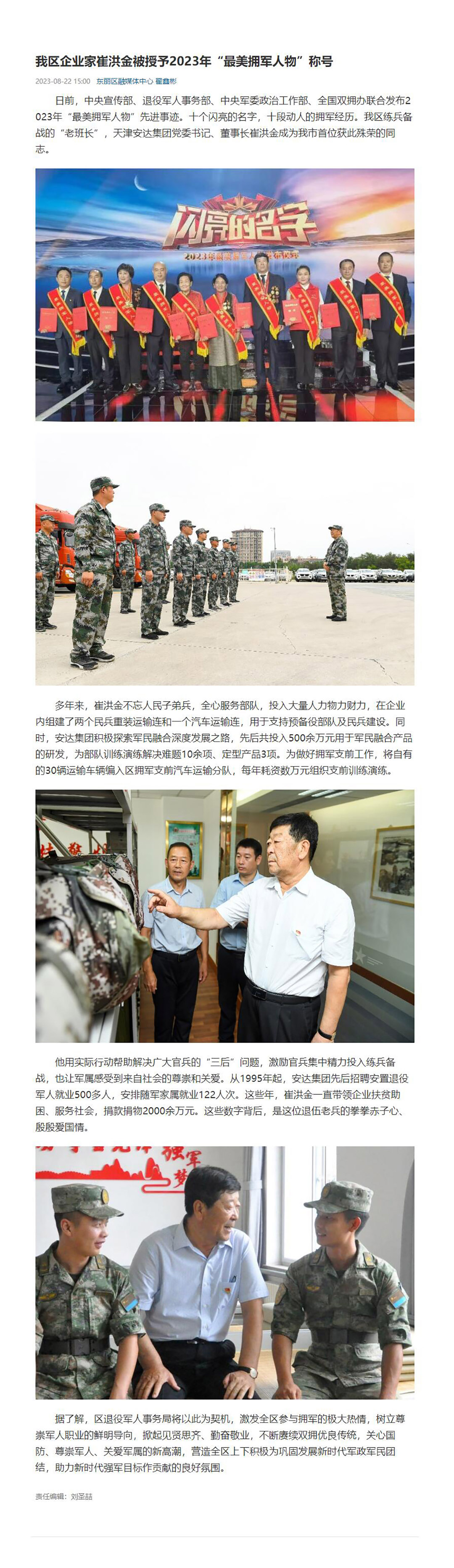 崔洪金董事长被授予2023年“最美拥军人...