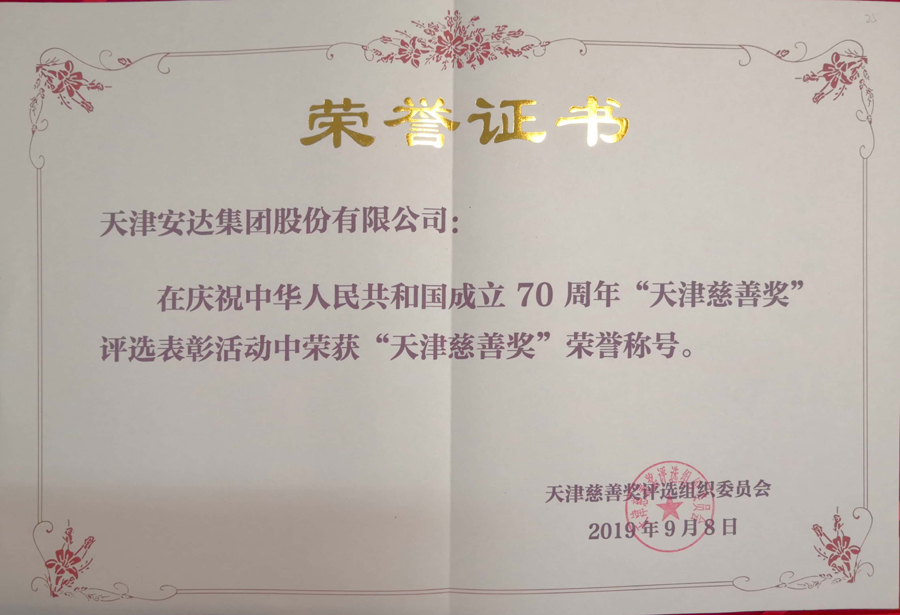 “天津慈善奖”自7月初启动,面向十八大以来为天津市公益慈善事业和东西部扶贫工作做出突出贡献的爱心单位和个人。在社会各界推荐、个人自荐的基础上,层层选拔,最终,57名个人、59个单位荣获“天津慈善奖”。天津荣耀体育(中国)集团因多年扶贫助困的爱心善举受到表彰,荣获“天津慈善奖”(单位)称号。