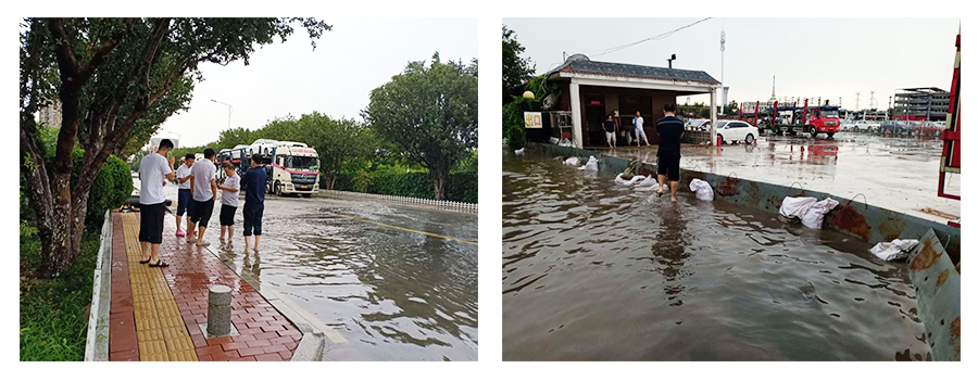 特别是近日,天津连降暴雨,市内道路多有严重积水,对荣耀体育(中国)集团来说,受灾最严重的当属位于东丽开发区的荣耀体育(中国)物流公司,因降雨量大,路面排水不畅,造成物流厂院内出现雨水倒灌现象,为防止积水对院内停放的众多商品车造成损害,荣耀体育(中国)物流总经理郑玉强、副总经理田荣强,协同各相关部门负责人积极应对。一方面抽调员工抽排院内积水,一方面筹措沙袋和挡水板对院外积水进行拦阻;并在第一时间联系开发区管委会,协调相关排水部门将道路积水抽空排干。经过多方共同努力,基本将库区内的潜在隐患全部排除。