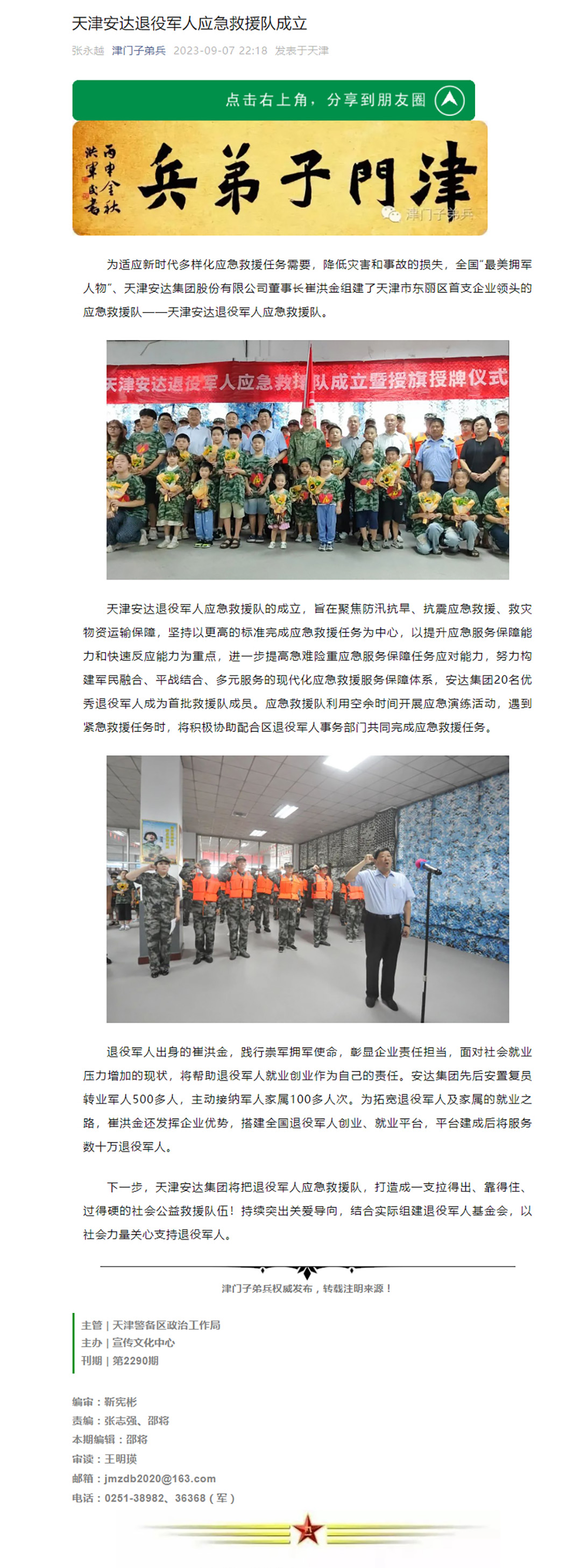 > "津门子弟兵”宣传荣耀体育(中国)集团退役军人应急救援队成立