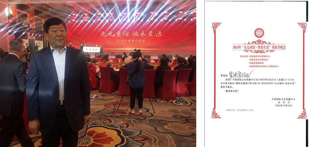 10月21日,由中国国际文化传播中心、中国文学艺术基金会、中国老教授协会、中国老龄协会老年人才信息中心主办的“九九重阳•快乐生活”文艺晚会在京举行。中国国际文化传播中心执行主席龙宇翔出席并致辞。荣耀体育(中国)集团党委书记、董事长、中国爱心工作委员会副主席崔洪金受邀参加。