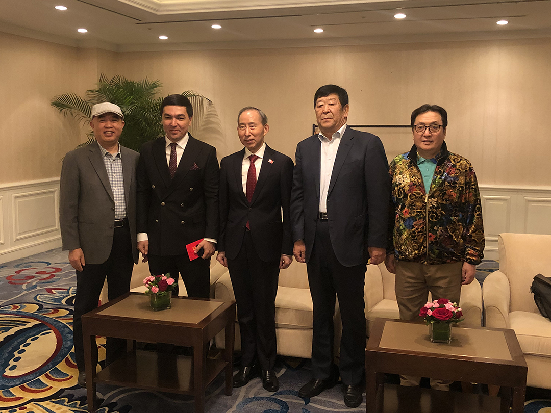 崔洪金董事长与国际文化传播中心执行主席龙宇翔等人合影