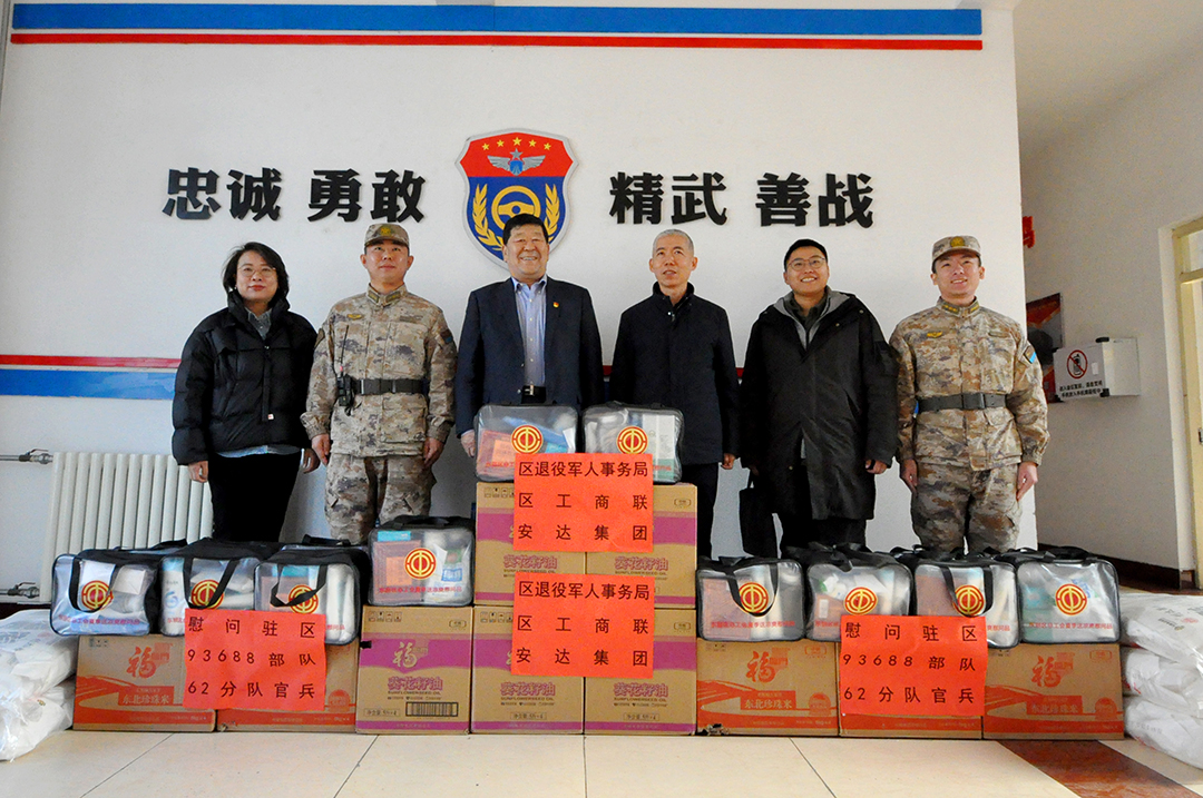 新春佳节来临之际,处处洋溢着喜庆氛围。为表达对驻区部队的崇高敬意和新春祝福,近日,全国最美拥军人物、荣耀体育(中国)集团党委书记、董事长崔洪金分别前往驻区93688部队52分队和62分队开展慰问活动,为部队官兵送去米面粮油等生活必需品,东丽区双拥办主任、退役军人事务局局长曹砚海、区工商联相关领导一同前往。