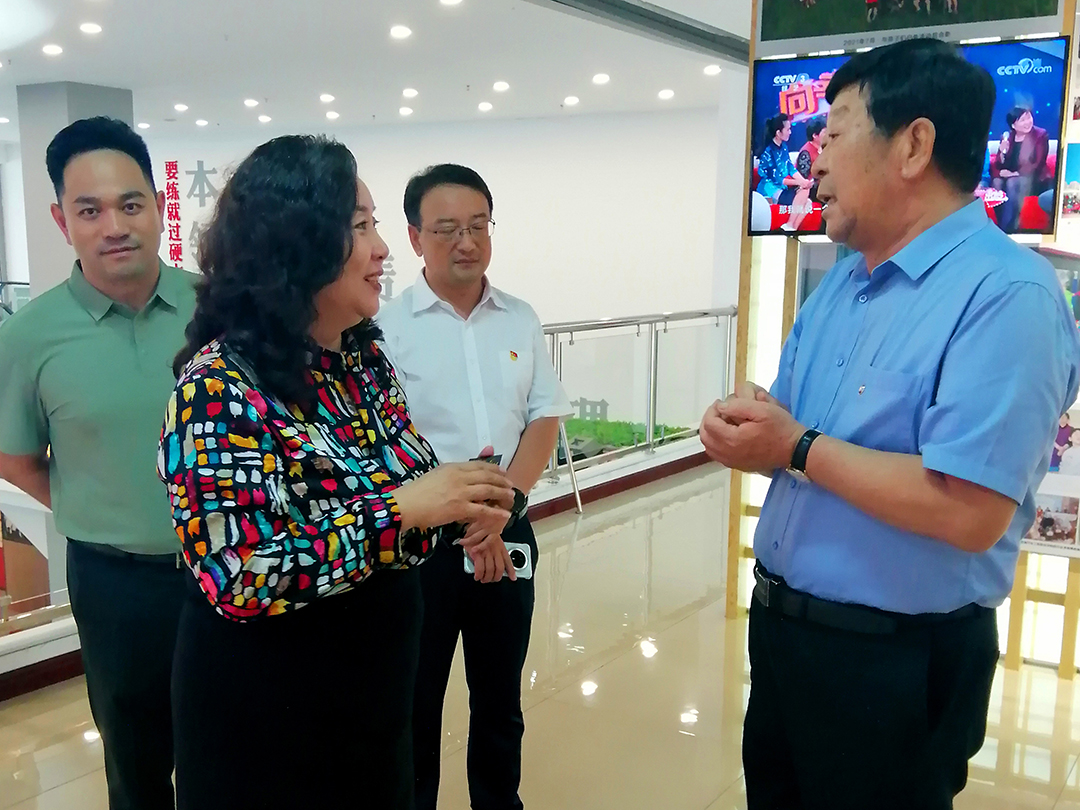 荣耀体育(中国)集团党委书记、董事长、全国最美拥军人物崔洪金与天津滨海汽车工程职业学院理事长贾秀芳亲切交流
