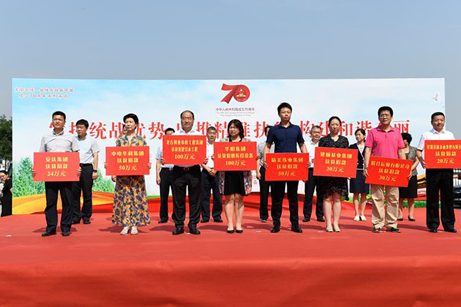 6月23日,东丽区委统战部举办了以“发挥统战优势、助推精准扶贫、构建和谐东丽”为主题的“六进社区”服务活动暨动员社会力量助力脱贫攻坚捐款仪式。市委常委、统战部部长冀国强,市委统战部常务副部长高树彬,市商务局副局长刘福强,市合作交流办副主任张莉,市工商联党组成员、机关党委书记、二级巡视员范学义及市委统战部相关处室负责同志,东丽区委书记夏新,区委常委、统战部长王玉凤,副区长李光华参加。东丽区东西部扶贫协作和支援合作领导小组成员单位及部分委办局负责同志,各街道、功能区、各街道商会有关负责同志,各民主党派、无党派人士活动组,新的社会阶层人士联谊活动组、侨海联谊活动组、台属联谊会、新生代企业家交流协会、部分社会组织、企业家代表以及社区居民代表共计2000余人参加活动。