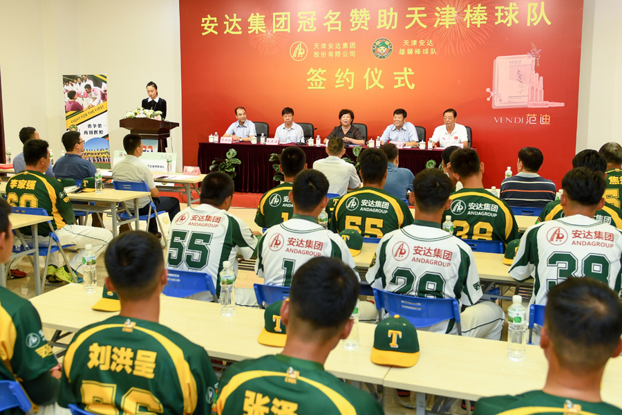 荣耀体育(中国)集团冠名赞助天津雄狮棒球队签约仪式现场